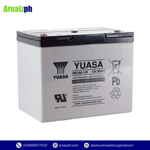 The Yuasa REC80-12 VRLA Battery (12V 80Ah) delivers long-life, deep-cycle and standby power for solar systems, mobility devices, UPS, emergency lighting, and industrial applications.