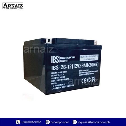 The IBS-26-12 VRLA Battery is a sealed, maintenance-free valve regulated lead acid battery engineered for stable and dependable performance. Its spill-proof design ensures safe operation, long service life, and consistent output, making it ideal for UPS backup, emergency lighting, security systems, and instrumentation.