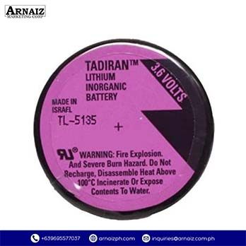 The Tadiran TL-5135 is a 3.6V 1700mAh lithium-thionyl chloride battery built for non-rechargeable applications. Its compact design (diameter 32.9mm � height 11.0mm) provides high energy density and consistent voltage output. Ideal for industrial devices, memory backup systems, sensors, and professional equipment requiring reliable long-term power.