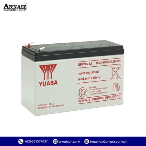 The Yuasa NPW45-12 VRLA Battery (12V 9Ah) provides high-rate, maintenance-free power for UPS systems, emergency lighting, alarms, and other critical standby applications.