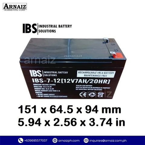 The IBS-7-12 VRLA Battery is engineered for consistent performance, long service life, and reliable power delivery. Its sealed, spill-proof design makes it suitable for standby and light cyclic use in alarms, emergency lighting, UPS systems, and other essential backup equipment.