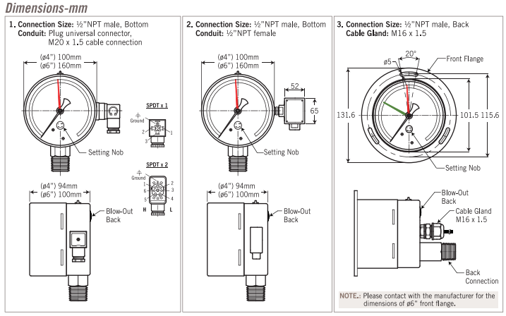 NEW FLOW Pressure Gauge with Micro Switch Weather Proof Type PIS5000